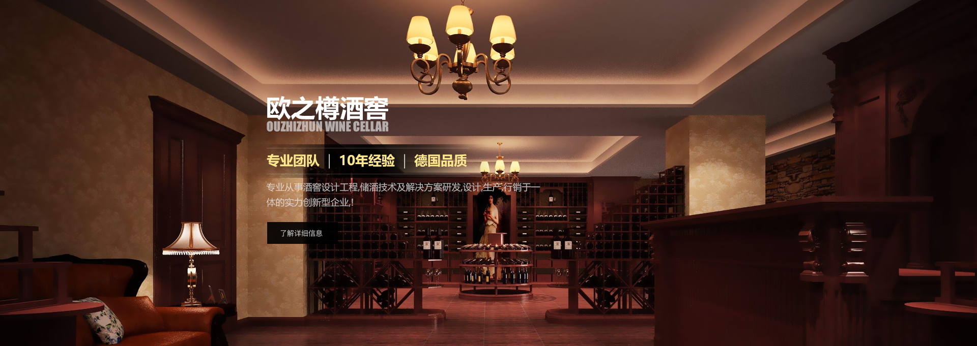 歐之樽酒窖專業(yè)的設(shè)計團(tuán)隊(duì),通過學(xué)習(xí)歐美成功酒窖的經(jīng)驗(yàn)與國內(nèi)市場相結(jié)合,使得我們的設(shè)計充滿著歐美氣息的中國風(fēng)。能讓你在緊張的城市氛圍中找到在大自然 中享受美酒的感覺。歐美進(jìn)口的全自動控溫控濕系統(tǒng)既穩(wěn)定又方便,